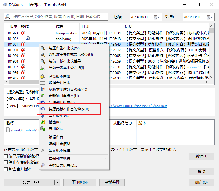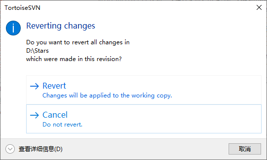Revert changes from this revision指的是复原此版本的修改,执行完之后应该是此版本提交前的状态。