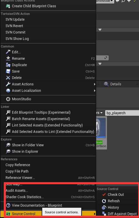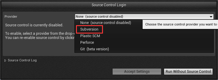 为了便于多人协作UnrealEngine提供了一个版本控制工具,可结合SVN、Git等工具对蓝图等资产进行版本控制。